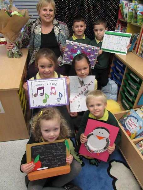 Staff and children held a special leaving assembly where each class presented her with a card and sung her favourite songs.