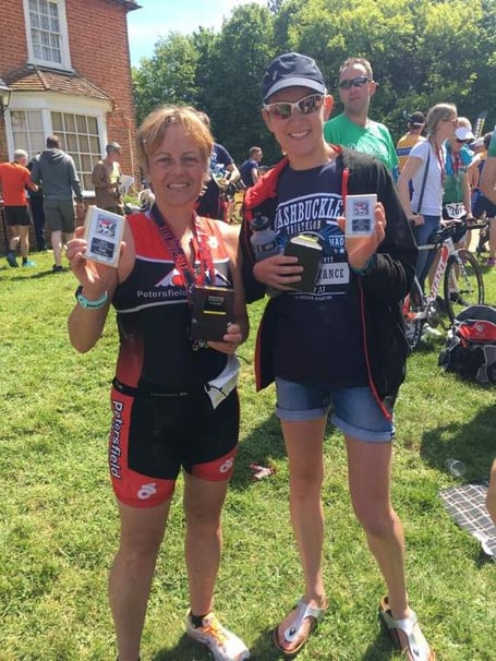 Sandra Sellis was the first placed veteran at the Arundel Sprint Triathlon, and Chris Turner picking up first place in her age category at Fareham’s Sprint Triathlon.