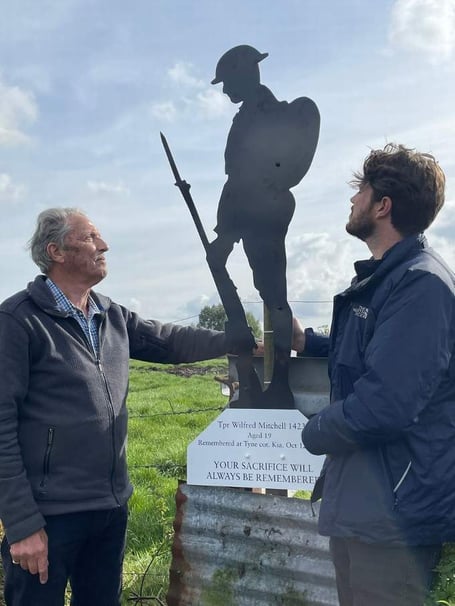 He said: “My son Ben and I put up a metal silhouette of a First World War infantryman at Requete Farm with a plaque. On the night of October 12, 2021, 104 years to the day after my uncle died, we stood vigil at 5am, which was about the time Household Battalion was preparing to attack.”