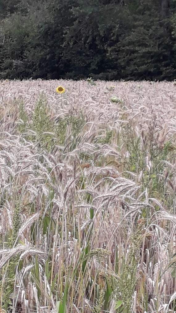 We noticed a small patch of wheat growing with sunflowers amongst it; my sister thought it had been left as ‘cover’ for the pheasants.