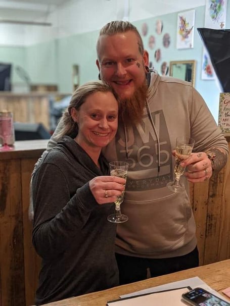 OWNERS of a new tattoo and body piercing studio celebrated with Champagne after more than 100 people attended its opening day.