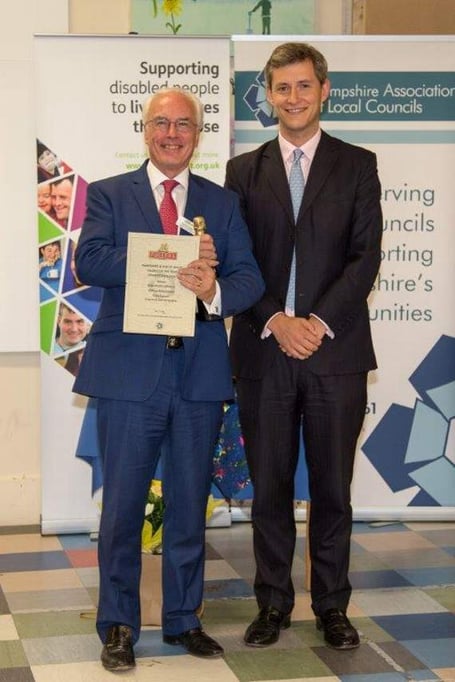 East Hampshire District Council leader Ferris Cowper was presented with the award for his work in his home town of Grayshott at the awards evening in Enham Place, near Andover.