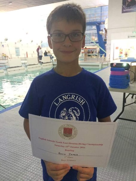 Bryn James of Stoneham Park is in Year Six at Langrish Primary School, and came first in the English Schools South East Regional Diving Finals.