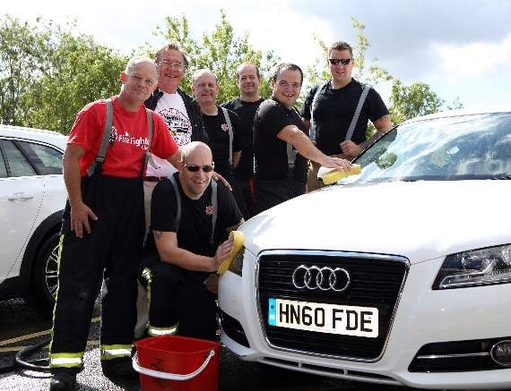 PETERSFIELD firefighters turned down the work pressures to raise money for two charities through a sponsored car and cycle wash.