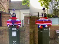 Knitted coronation postbox toppers appear overnight in Haslemere